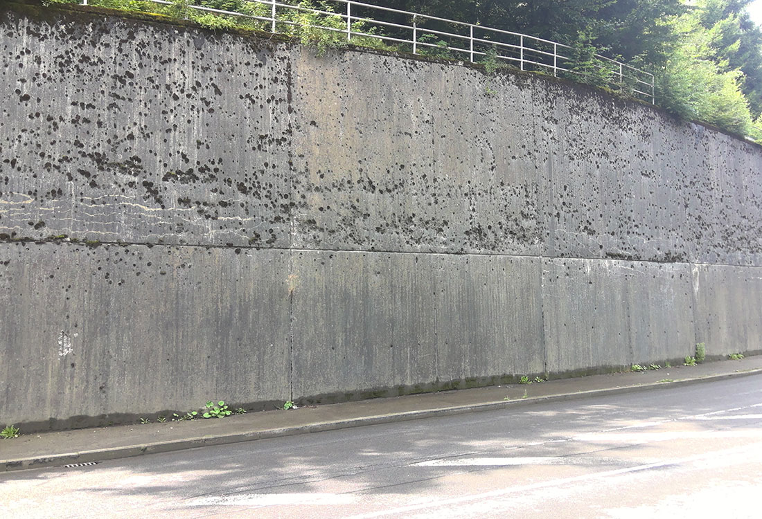 Die Stützwand an der Kreisstraße 46 in Gummersbach-Talbecke wird