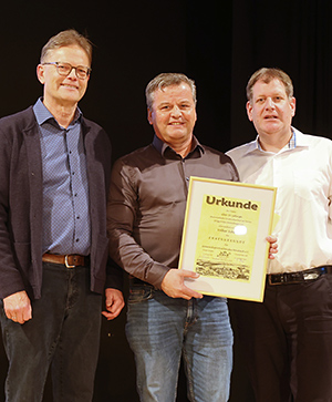 [Für 32 Jahre Vorstandsarbeit und 52 Jahre aktiver Teilnahme am Spielbetrieb der SpVgg. Holpe-Steimelhagen gab es eine GSV-Ehrenurkunde für Volker Schütz (Mitte).]