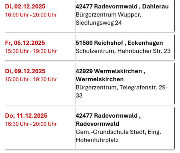 Oberberg - Das Deutsche Rote Kreuz gibt die Blutspendetermine für die kommenden Wochen bekannt (AKTUALISIERT).
