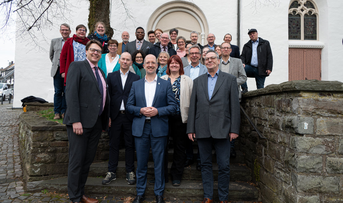 Die rheinische Kirchenleitung mit Präses Thorsten Latzel kam am vergangenen Wochenende zu ihrer Klausurtagung im Derichsweiler Hof in Nümbrecht zusammen. Dabei stand unter anderem auch ein Treffen mit dem Synodalvorstand des Evangelischen Kirchenkreises An der Agger auf dem Programm. Es ging um Fragen wie „Was ist unser geistliches Profil?“, „Wie sind wir Kirche?“, „Warum sind wir Diakonie?“, „Wie stärken wir junge Menschen?“ und „Wie machen wir unsere Angebote in Seelsorge, Musik, Glauben erleben und Jugendarbeit noch sichtbarer?“ Präses Latzel betonte: "Wir hören und lernen viel von diesem Besuch."