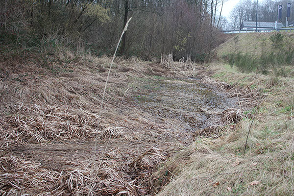 Noch vor einigen Jahren gab es ein wahres Amphibienparadies an der Lise-Meitner-Straße. Der große Teich war in den 1980er-Jahren als Ausgleichsmaßnahme angelegt worden und war seitdem Heimat unter anderem von Grasfröschen, Molchen und Erdkröten. Als die Umbaumaßnahme für die Lise-Meitner-Straße geplant wurde, musste der Teich weichen. Der Kompromiss, den der Nabu Waldbröl erreichen konnte, sah einen neuen Teich vor, mit mehr als 100 Quadratmetern etwa ein Drittel so groß wie zuvor. Dieser wurde 2020 angelegt. Doch schnell gab es Probleme, der Teich war undicht. Reiner Stegemann vom Nabu wies schon früh darauf hin. Abhilfe scheint es aber erst jetzt zu geben.