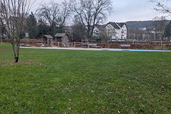 Auf der Erweiterungsfläche sollen vier neue Spielgeräte und weitere Elemente dafür sorgen, dass Kinder der Altersgruppen bis sechs Jahre noch mehr Spaß im Wiehlpark haben. Die vorhandene Fläche umfasst aktuell eine Spielhauskombination aus Robinienholz mit einer Anbaurutsche aus Edelstahl, eine Sandspielanlage, ein Kugelspiel sowie zwei Trampoline. Die Erweiterung soll sich nun an dieser Fläche orientieren und nahtlos andocken. Auch die Materialität werde größtenteils aus dem Bestand übernommen, beispielsweise die Einfassung aus Natursteinfindlingen und die blauen, weichen Fallschutzflächen.