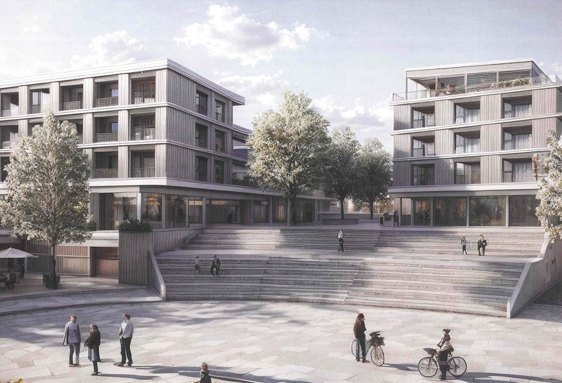 Insgesamt sollen auf dem Areal 54 neue Wohnungen entstehen, die überwiegend barrierefrei beziehungsweise rollstuhlgerecht gestaltet sind. Im Erdgeschoss ist ein Nutzungsmix aus Einzelhandel, Gastronomie, Dienstleistungen und Gesundheitsangeboten vorgesehen. "Ein besonderes Highlight wird zudem ein Restaurant im Staffelgeschoss sein, das den neuen Stadtbaustein zusätzlich aufwertet", so die Verwaltung weiter. Unterhalb der Gebäude ist eine Tiefgarage geplant.