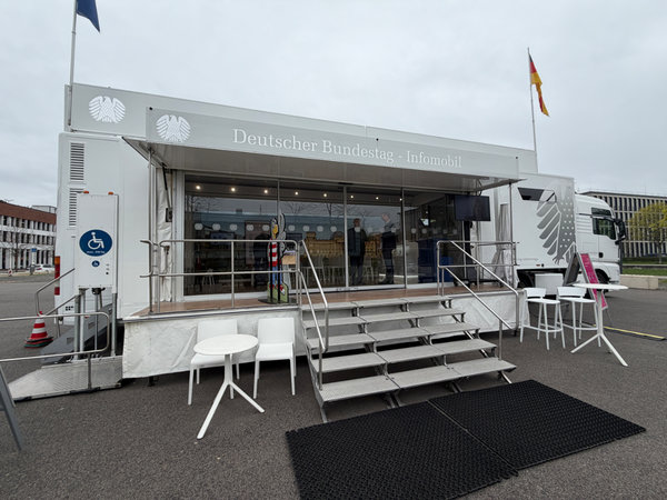Gummersbach – Das Infomobil des Bundestages steht noch bis Mittwoch auf dem Steinmüllergelände – Schulklassen, Gruppen und Einzelbesucher sind willkommen.