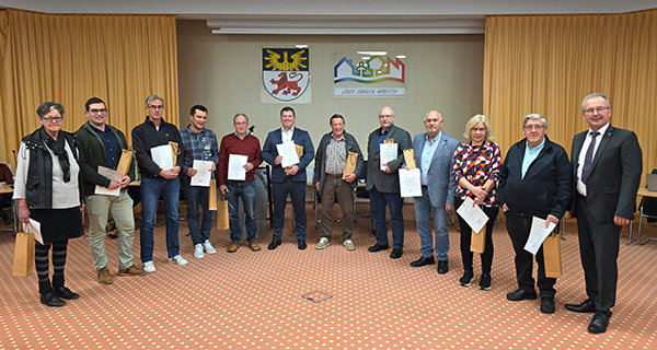 [Auch mehrere Ratsmitglieder und Sachkundige Bürger wurden mit einer Urkunde und einem guten Tropfen aus der politischen Arbeit für die Gemeinde verabschiedet.]