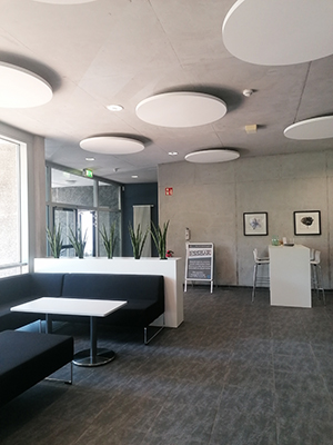 [Durch die Schallschutzelemente wurde die Akustik des Aufenthaltsraums deutlich verbessert.]