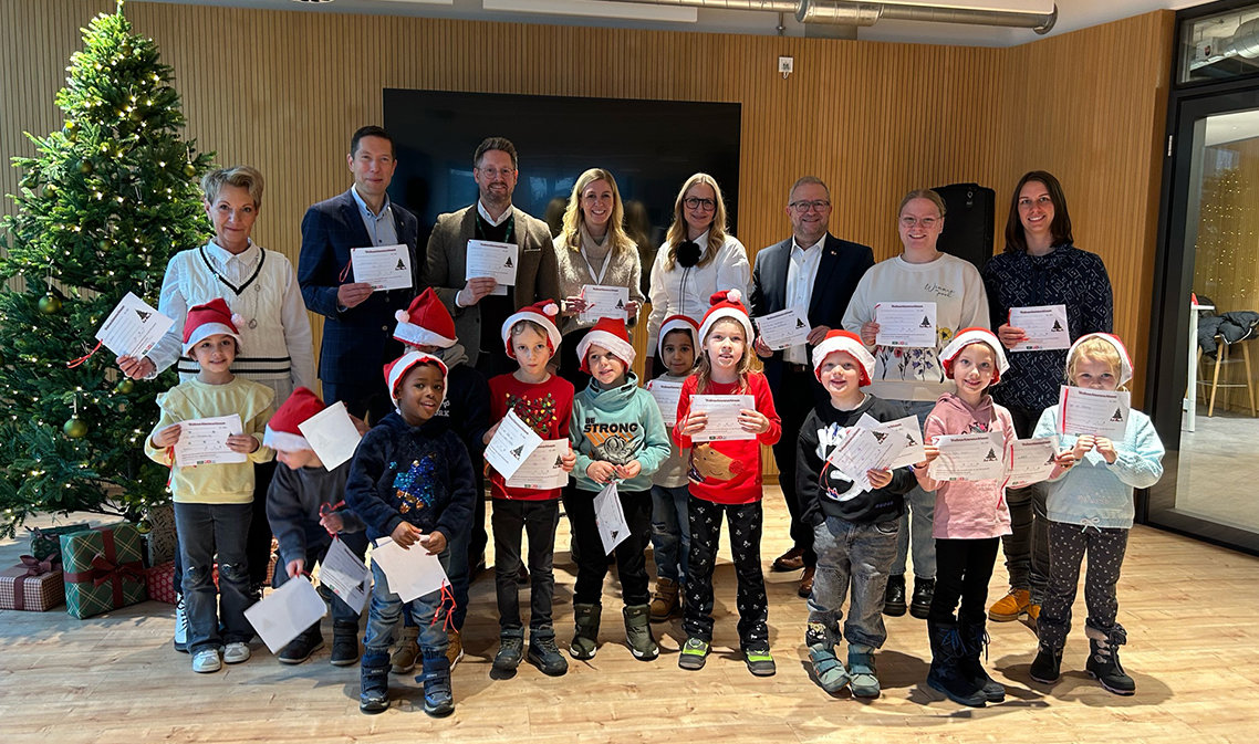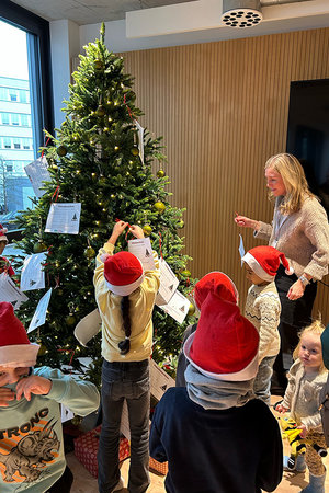 Zwischen den kurzen Wortbeiträgen führten die elf Kita-Kinder drei Tänze auf. Danach durften sie die zahlreichen Wunschzettel an den Weihnachtsbaum hängen. Ob Puppen, Kinderschminke, Bücher oder auch ganz grundlegende Dinge wie Winterschuhe: darauf zu lesen sind ganz unterschiedliche Wünsche. „Leider gibt es auch bei uns in Gummersbach und in Oberberg zunehmend Menschen, die arm sind, die wenig Geld haben – was auch Kinder und Jugendliche betrifft“, sagte Raoul Halding-Hoppenheit. Sichtbar werde das nicht zuletzt an Weihnachten, wenn unter dem Weihnachtsbaum etwas fehlt. Umso wichtiger und unverzichtbarer sei diese Aktion.