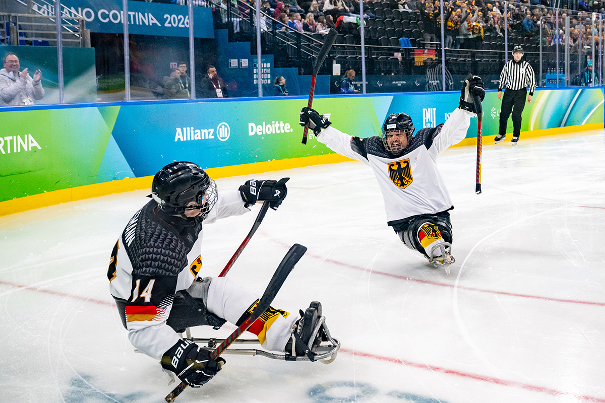 Es war eine Szene, die sich wohl alle, die es mit der deutschen Para Eishockey-Nationalmannschaft halten, im Vorhinein erträumt hatten. Jano Bußmann fuhr nach einem Pass von Ingo Kuhli-Lauenstein plötzlich allein auf das italienische Tor zu. Erst wenige Minuten waren gespielt und das erste Tor bei Paralympics nach zwanzig Jahren zum Greifen nah. Die Spannung in der gesamten Mailänder Arena war spürbar – und verwandelte sich kurz darauf in Ekstase, als Bußmann den Puck am italienischen Goalie vorbei im Tor unterbrachte. Riesig war der Jubel beim am Vortag erst 19 Jahre alt gewordenen Bergneustädter (TuS Wiehl) und seinen Teamkollegen.