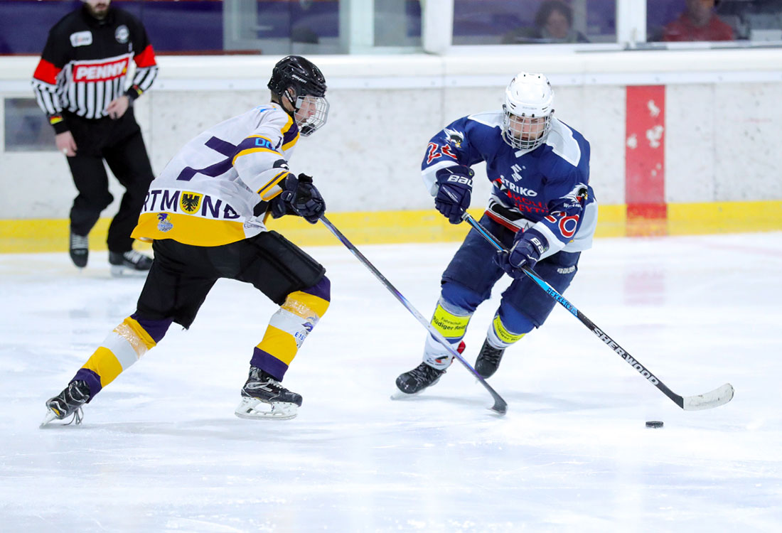 Nach zwei unglücklichen Auswärtsniederlagen (2:6 gegen Herford und 3:4 n.P. gegen Troisdorf) stand für die U20 der Penguins das richtungsweisende Spiel gegen Dortmund an. Die Penguins waren von Beginn an das spielbestimmende Team. Nach dem 1:0 in der ersten Spielminute durch Vincent Nosber, folgten zahlreiche weitere Torchancen für die Wiehler. Die Dortmunder kamen bei dem druckvollen Offensivspiel der Penguins kaum aus ihrem Drittel. Bis zum Drittelende bauten die Wiehler durch Amand Herczeg und Ben Kautschke (2) die Führung auf 4:0 aus.