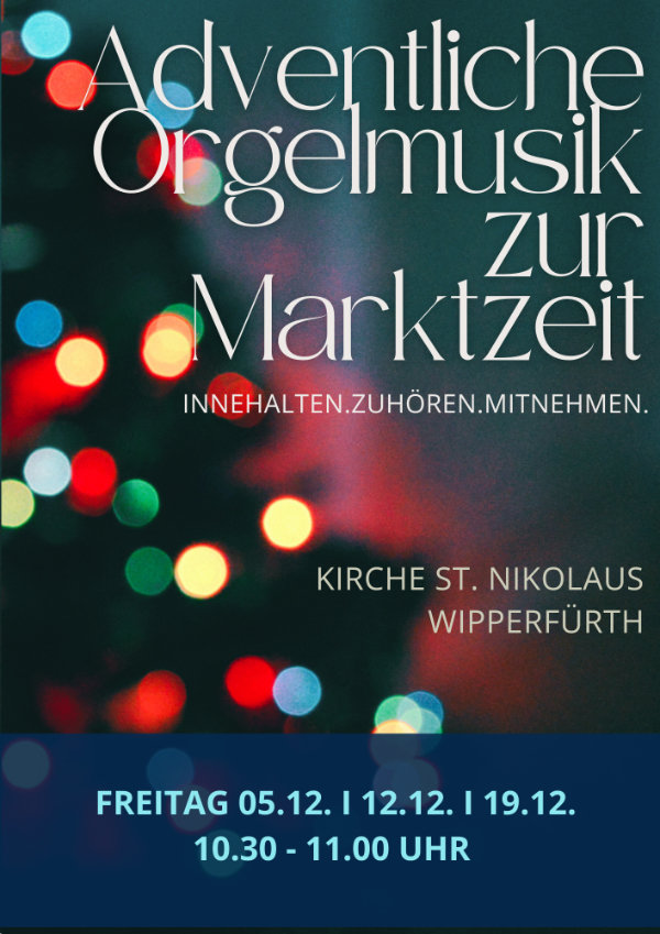 WIPPERFüRTH Adventliche Orgelmusik zur Marktzeit TEILEN Red; 30.11.2025, 10:58 Uhr Wipperfürth - Musik in der Kirche St. Nikolaus. WERBUNG