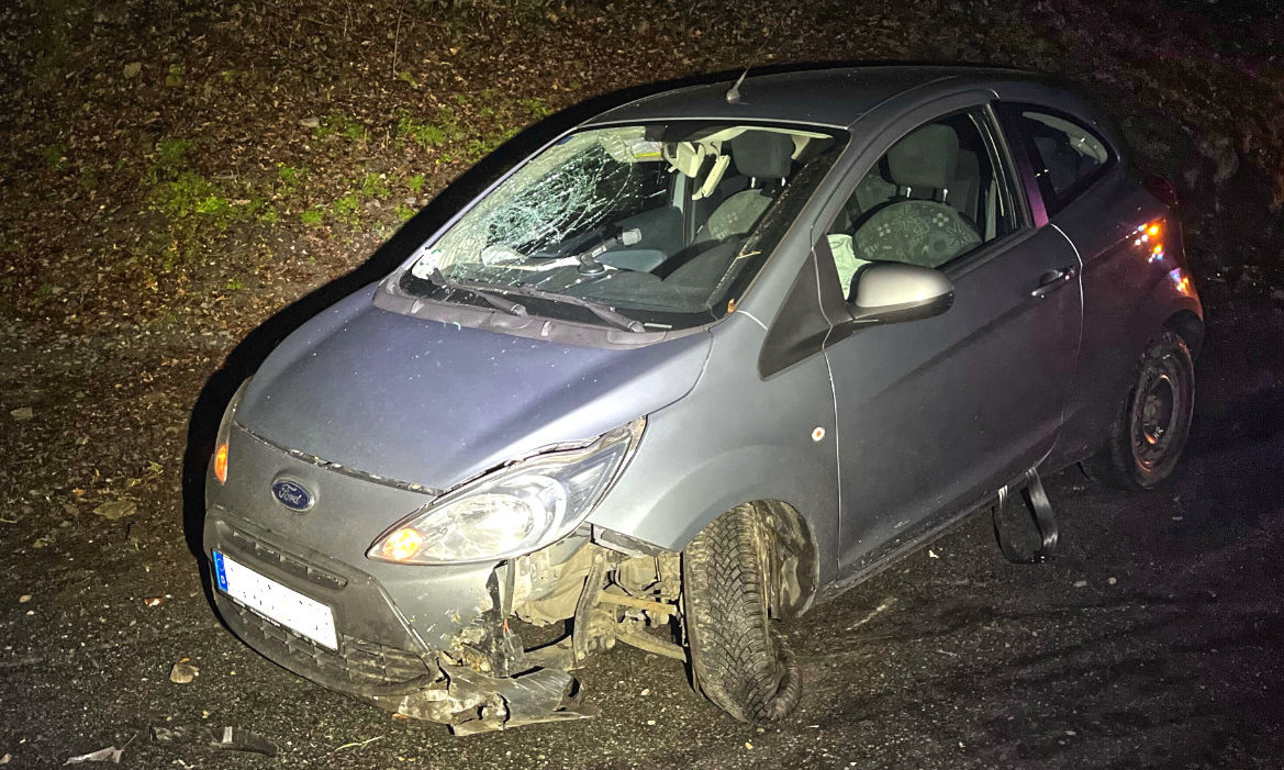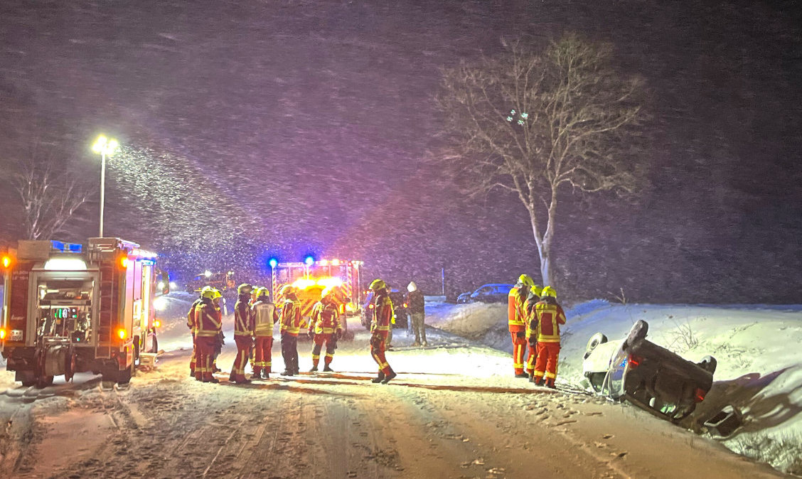 Auto rutscht auf glatter Straße in den Graben