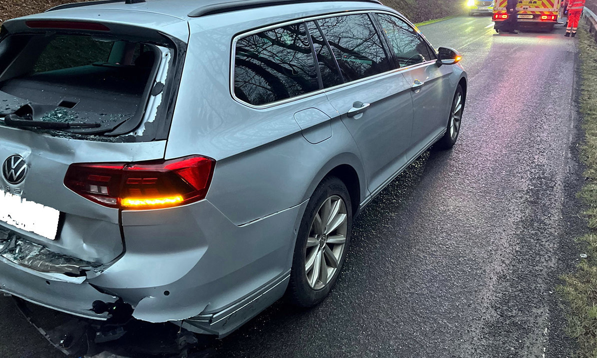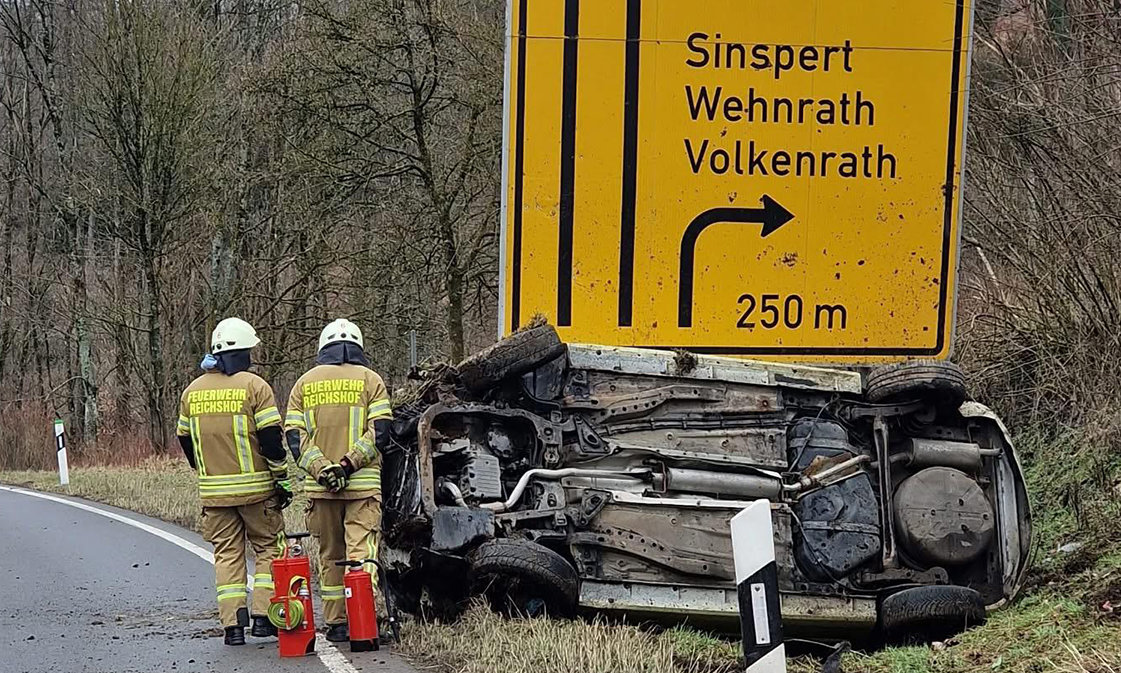 pn; 23.02.2026, 11:55 UhrReichshof - Zwei Waldbröler, eine 30-jährige Autofahrerin und ihr 25-jähriger Beifahrer, werden bei einem Unfall leicht verletzt.