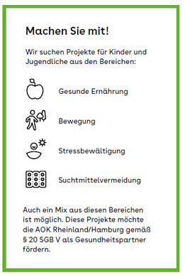 Oberberg - Mit dem Starke Kids Förderpreis unterstützt die AOK Rheinland/Hamburg mit innovativen Projekten im Oberbergischen mit insgesamt 6.000 Euro - Jetzt bewerben.