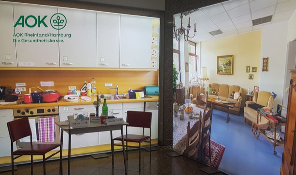 Die AOK Rheinland/Hamburg bietet Interessierten aufgrund der großen Nachfrage die Möglichkeit, die Musterwohnung in ihrer mobilen Form im AOK-Haus in Gummersbach zu erleben.