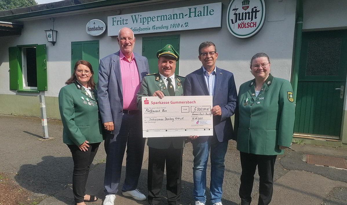 Gummersbach – Die Sparkassen- und Bürgerstiftung spendet dem Schießverein Bernberg 5.000 Euro – Weitere 2.000 Euro kommen von der Sparkasse.
