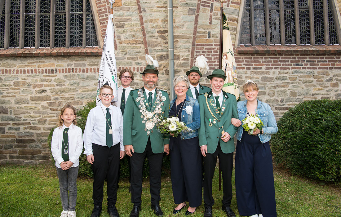 Der Königsvogel fiel laut Mitteilung mit dem 326. Schuss - wieder reckte ein Lischke die Arme gen Himmel. Als Königin steht Jan-Peter Lischke seine Frau Anette zur Seite. Die Krone holte sich Leonie Nonnebroich mit dem 42. Schuss, den linken Flügel Ines Lischke mit dem 100. Schuss und den rechten Flügel Paul Quiring mit dem 156. Schuss.