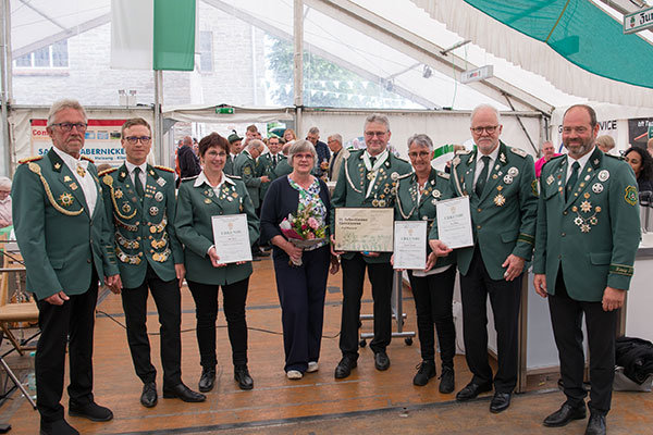 Sonntag ging das Schützenfest nach dem Kirchgang mit dem musikalischen Frühschoppen weiter. Hier fanden auch Ehrungen der Bruderschaft statt. Elke Dienst wurde mit dem Silbernen Verdienstkreuz ausgezeichnet. Claudia Sauerbier und Josef Müller erhielten den Hohne Bruderschaftsorden und Rolf Kemmerich wurde das Sebastianus Ehrenkreuz verliehen.
