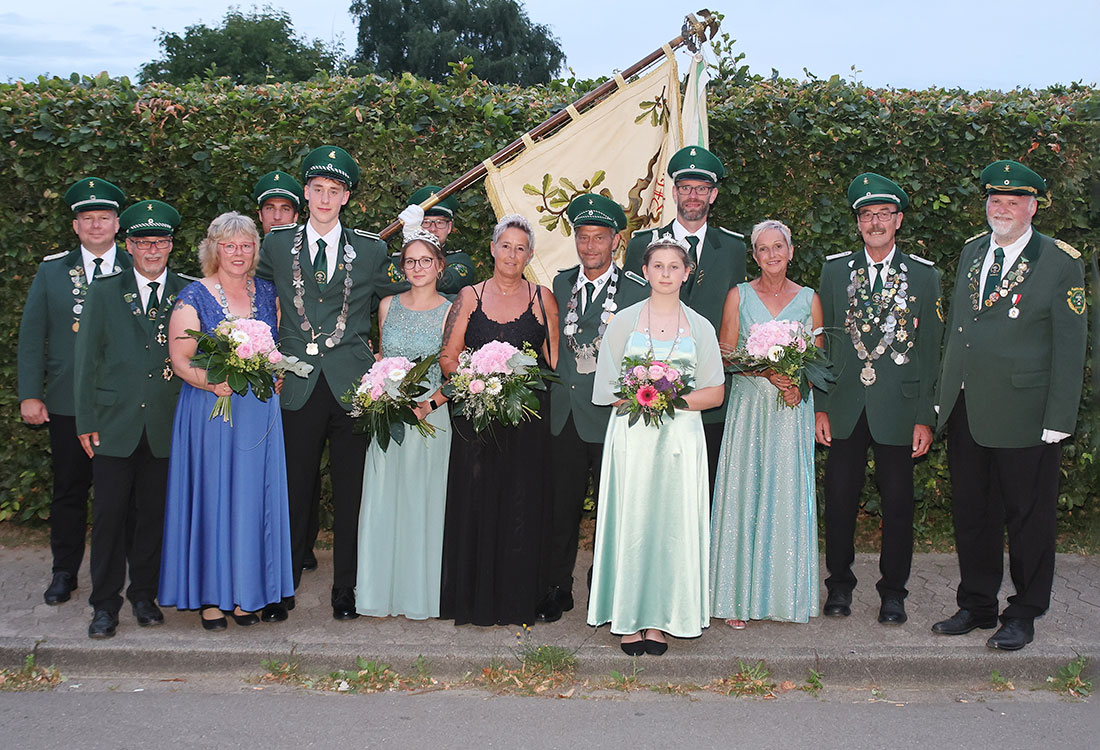 Schon eine Woche zuvor wurden die weiteren Majestäten ermittelt. Den Kaisertitel holte sich Axel Dresbach, der mit dem 31. Schuss den Aar bezwang und gemeinsam mit Kaiserin Gunni die Nachfolge seines Sohnes Manuel antritt. Für die Familie Dresbach schließt sich damit ein historischer Kreis: Vor genau 100 Jahren war Axels Urgroßvater Max der erste König nach dem Wiederbeginn des Vereins 1925.