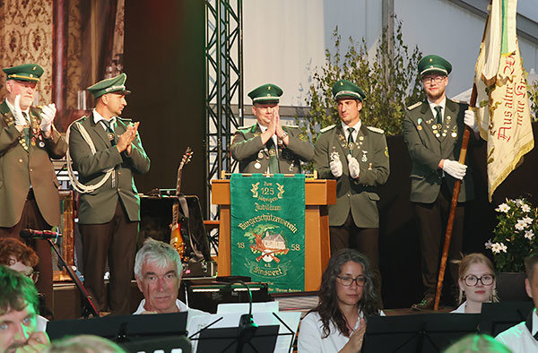 Für Rene Kauffmann waren die Krönungsfeierlichkeiten ein besonderer Moment: Nach 20 Jahren als Vorsitzender der Bürgerschützen war es sein letztes Fest in dieser Rolle. „Dieses Schützenfest war mein letztes als Vorsitzender und diese Krönung meine letzte nach 20 Jahren“, erklärte er in seiner emotionalen Rede. Kauffmann dankte den Mitgliedern für ihr Vertrauen und versprach, dem Verein weiterhin eng verbunden zu bleiben: „Am Ende des Tages sind 20 Jahre für jemanden, der mit 24 angefangen hat, eine ziemlich lange Zeit. Ich werde das neue Team unterstützen, um den Verein erfolgreich in die Zukunft zu führen.“ Mit großem Applaus würdigten die Schützen seinen langjährigen Einsatz.