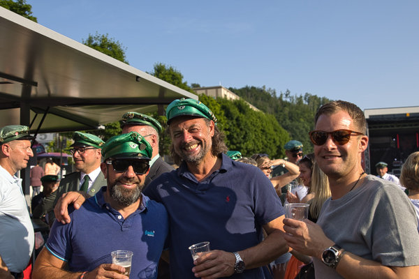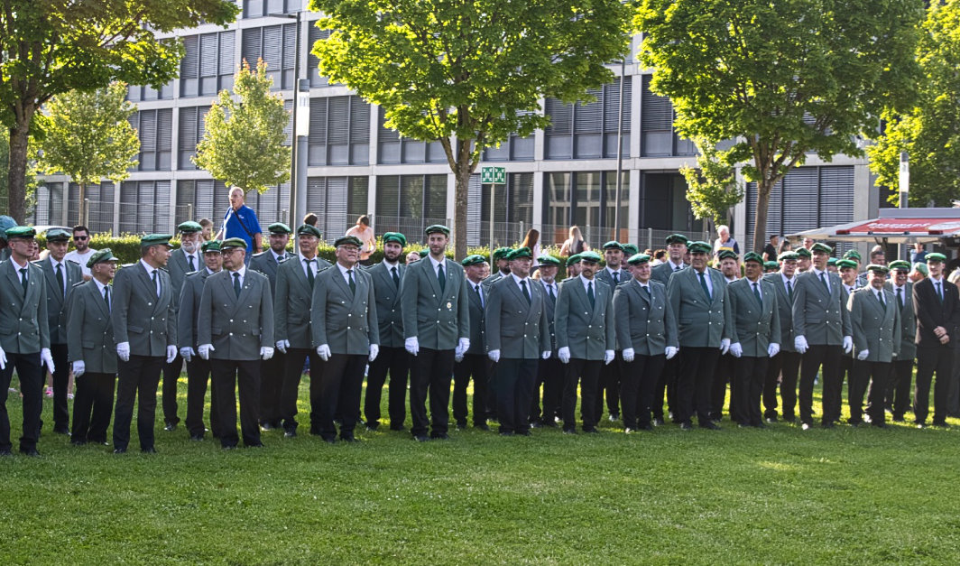 In großer Vorfreude auf das Schützenfest strahlt Gummersbachs Innenstadt seit Tagen in grün-weißen Farben. Am Freitag hatte das Warten ein Ende. Die Grünröcke starteten bei bestem Sommerwetter ins lange Schützenfestwochenende. Der neue Festplatz am Steinmüllergelände wurde dafür ordentlich rausgeputzt. „Sogar der Rasen wurde noch einmal gemäht“, verriet Bürgermeister Frank Helmenstein. Die Sicherheitsvorkehrungen während des Schützenfestes hat die Stadt Gummersbach übernommen.