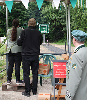 Es wurde spannend beim Königsvogelschießen am heutigen Nachmittag auf dem Schießstand der Bergneustädter Schützen in der Gimbornstraße. Robert Kämke und Sascha Bonness lieferten sich zum Ende hin ein packendes Duell und kratzten bei fast jeder Runde am hölzernen Königsadler.