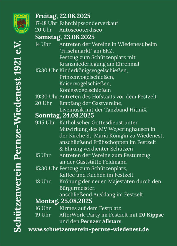 BERGNEUSTADT Schützenfest in Pernze TEILEN Red; 13.07.2025, 12:00 Uhr Bergneustadt - Die Grünröcke im Ort laden vom 23. bis 25. August ein. WERBUNG