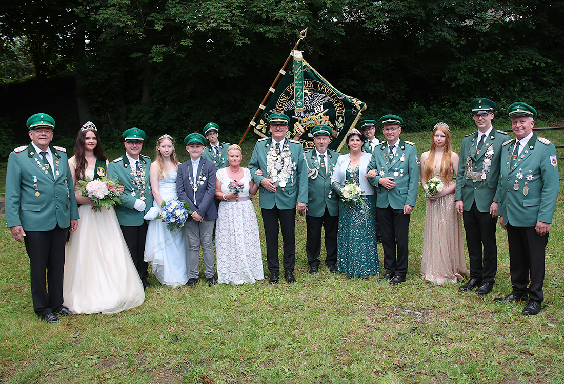 Aus den Reihen der Jungschützen versuchten acht Bewerber den Titel zu erlangen. Mit dem 235. Schuss setzte sich Leon Schröder durch und wurde somit neuer Jungschützenkönig. Sabine Valperz setzte sich beim Kampf um die Kaiserwürde gegen vier Konkurrenten durch und holte den Vogel mit dem 107. Schuss von der Stange. Damit bleibt diese Kette im Hause Valperz, da ihr Ehemann Sascha im Vorjahr Kaiser war.