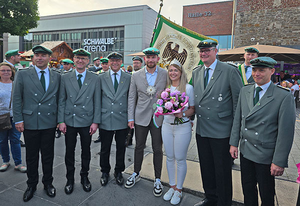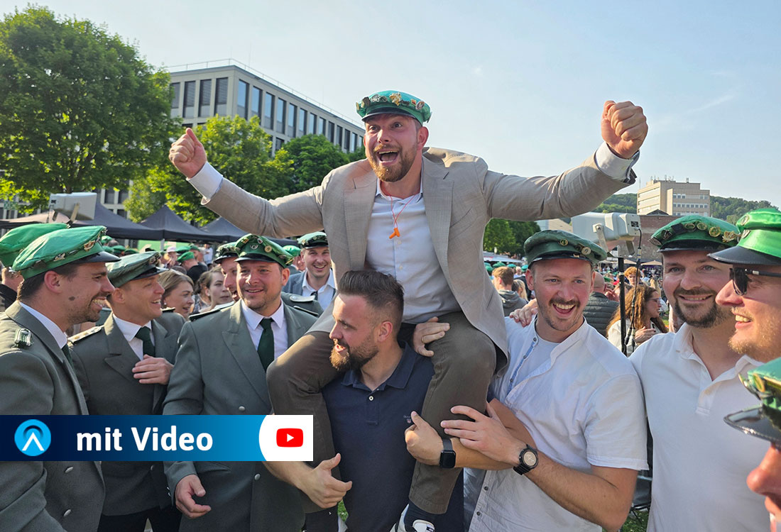 Anschließend wurde er von seinen Kompaniefreunden auf Schultern getragen und durfte sich von seiner Königin Nina Jurczak den ersten Siegerkuss abholen. Der gebürtige Düsseldorfer zog 1997 nach Bergneustadt und ist mittlerweile tief im Oberbergischen verwurzelt. Dem Gummersbacher Schützenverein ist er erst vor vier Jahren beigetreten und war bereits 2023 gegen den späteren König Ingo Lütke angetreten. Blaue: „Das Schützen-Fieber hat mich schnell gepackt und ich wollte es in diesem Jahr unbedingt noch einmal in Angriff nehmen.“