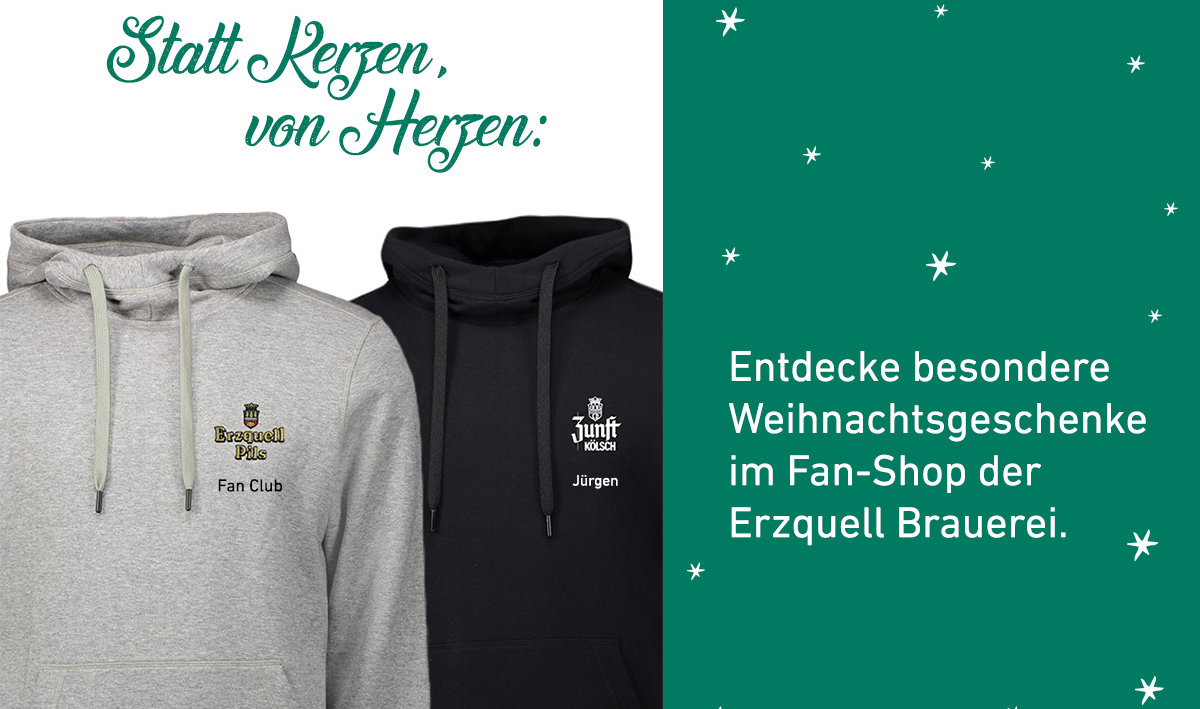 Noch auf der Suche nach einem passenden Weihnachtsgeschenk? Oder einem Last-Minute-Adventskalender? Im Online Fan-Shop der Erzquell Brauerei gibt es viele verschiedene Produkte für Zunft Kölsch und Erzquell Pils Fans.