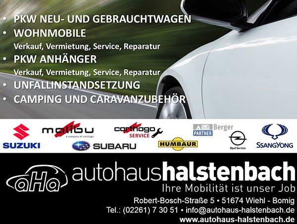 Ihre Mobilität ist unser Job. Nicht nur ein Motto, sondern gelebte Philosophie im Autohaus Halstenbach in Wiehl-Bomig. Seit über 40 Jahren ist das Team um Geschäftsführer Jörg Halstenbach ein kompetenter Ansprechpartner, wenn es um das Thema Auto geht.