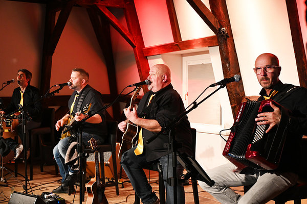 Mit dem 210 km/h fahrenden Maserati und „Ich will Spaß“ präsentierten „Die Goldenen Reiter“ Musik der Neuen Deutschen Welle. Gewürzt wurde das Menü der vier Herren in Schwarz mit goldenem Schlips durch „Carbonara“ oder „I was made for loving you“. Die NDW hatte ein breites Spektrum - selbst gejodelt wurde da, wie bei „Die Sennerin vom Königssee“. Die Formation besteht aus Oyo Steinke (Gesang, Gitarre und Ukulele und weitere Instrumente), Markus Grieß (Gesang, Gitarre und Akkordeon) sowie der singenden Rhythmusgruppe, Bassist Axel Lausch und Drummer Peter Härtel.