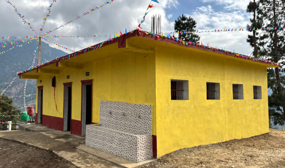 „Die alte Toilettenanlage war über 50 Jahre alt und die hygienischen Zustände katastrophal und nicht mehr tragbar“, so Renate Kotz. Seit Januar 2025 wurde an dem neuen Gebäude gebaut, rund 35.000 Euro investierte der Verein dafür. Da es sich um ein für nepalesische Standards sehr modernes Gebäude handelt, musste Projektkoordinator Pancha für die Installation der Rohre und Abflüsse einen Fachmann aus Kathmandu kommen lassen, da keiner von den örtlichen Gewerken damit Erfahrung hatte. „Wir sind sehr glücklich, dass wir mit diesem Gebäude den Schülerinnen und Schülern eine gut ausgestattete Sanitäranlage bieten können. Nun gibt es unter anderem Handwaschbecken, fließendes Wasser und leicht zu reinigende Oberflächen“, erklärte Kotz.