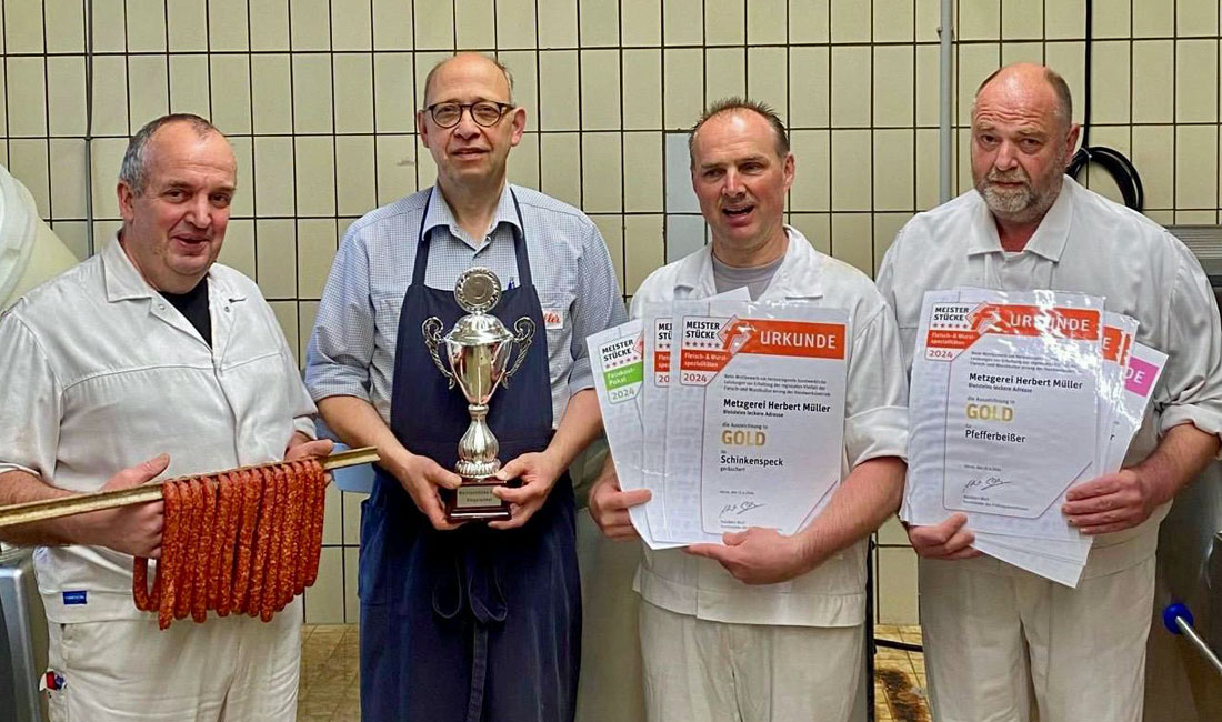 In dieser Woche wurden die Auszeichnungen der „Meisterstücke“ vergeben, einem Wettbewerb für Produkte der Fleisch- und Wurstkultur in Deutschland. Die Metzgerei Müller aus Bielstein gewann dabei für ihre Pfefferbeißer, den Schinkenspeck und Wacholderschinken, die rheinische Jagdwurst, feine Leberwurst, Landleberwurst und ihren Fleischsalat jeweils Gold. Die Fleischwurst im Ring sowie die Bielsteiner Blutwurst wurde mit Silber ausgezeichnet. Mit dieser Medaillenausbeute hat das Familienunternehmen das Recht erworben, auch weiterhin das Siegel „Wir sind bei den Besten“ zu führen. Zusätzlich wurde dem Betrieb der „Meisterstücke Siegerpokal 2024“ verliehen.