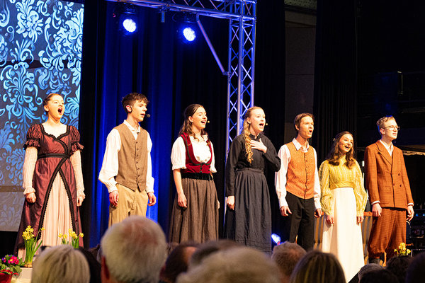 [Vier Aufführungen des Musicals „Little Woman“ stehen am Dietrich-Bonhoeffer-Gymnasium bevor – vom 3. bis 6. April. Einige Mitwirkende gaben eine kurze Kostprobe dazu.]