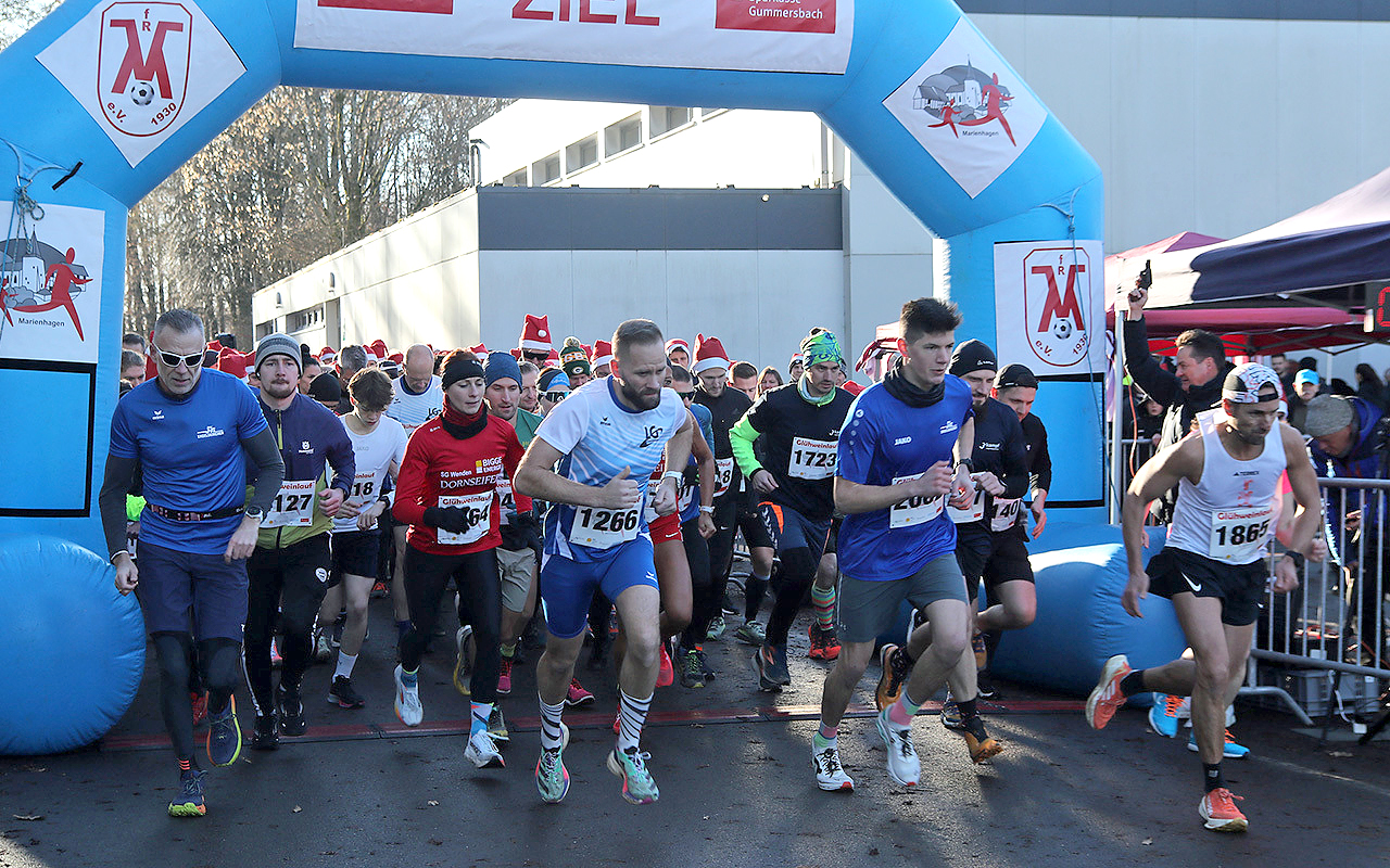 Was einst als kleiner vorweihnachtlicher Lauf begonnen hatte, ist inzwischen zu einer Großveranstaltung avanciert. Weit mehr als 1.000 Starter bevölkerten am Samstag das Wiehler Bergdorf Marienhagen, um am 12. Glühweinlauf des VfR Marienhagen teilzunehmen. Und der Verein konnte ein äußerst positives Fazit ziehen. Die äußeren Bedingungen mit strahlendem Sonnenschein und „adventlichen“ Temperaturen hätten idealer nicht sein können und mit 1.470 Anmeldungen wurde ein neuer Rekord verzeichnet.