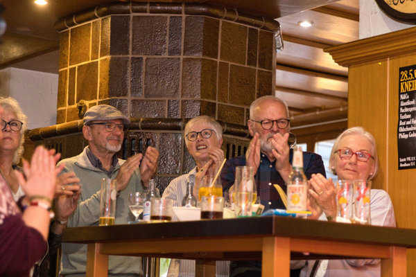 „Wir sind von Anfang an beim Kneipenbummel dabei“, sagte „Sümpfchen“- Inhaber Frank Schnackerz. Seit 39 Jahren gehört dem Gastronomen mit Herz und Seele die beliebte Kultkneipe. Schnackerz stand auch am Mittwochabend „an der Tür“: „Ich schaue, dass alle ihre Eintrittsbändchen haben“, sagte er. Auf die Frage, warum er immer noch Spaß an seinem Job habe, antwortete er lachend: „Ich brauche das“. Im gut besuchten „Sümpfchen“ machte sich indes die Band fertig für den Auftritt. „Einen wunderschönen guten Abend. Wir wollen den Rest des Abends Oldschool Rock spielen. Ich hoffe, ihr lauft nicht weg“, kündigte Leadsänger Holger den Gig an. Unter den Top-Acts der Rockmusik der letzten Jahrzehnte war für jeden Kneipenbummler etwas dabei.
