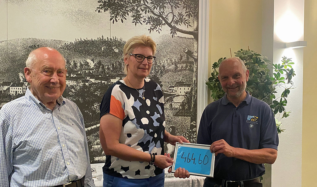 Der Motorradclub beendete eine einwöchige Tour zu den vier Meisterschafts-Rennstrecken des Jahres 1964, auf denen Max Deubel und sein Beifahrer Emil Hörner den vierten Deutschen Meisterschaftstitel feiern konnten, mit einem unterhaltsamen Abend. Zur Übergabe des symbolischen Schecks war die 1. Vorsitzende des CVJM, Isabel Küpper-Dabringhausen, eingeladen. Die Spendensumme hat übrigens einen historischen Bezug zu Deubels Karriere: Im Jahr 1964, also vor 60 Jahren, wurde er jeweils zum vierten Mal Deutscher Meister und Weltmeister - 464,60 Euro. Der Ehrengast rundete die Veranstaltung mit der Erzählung von humorvollen Anekdoten und Geschichten ab.