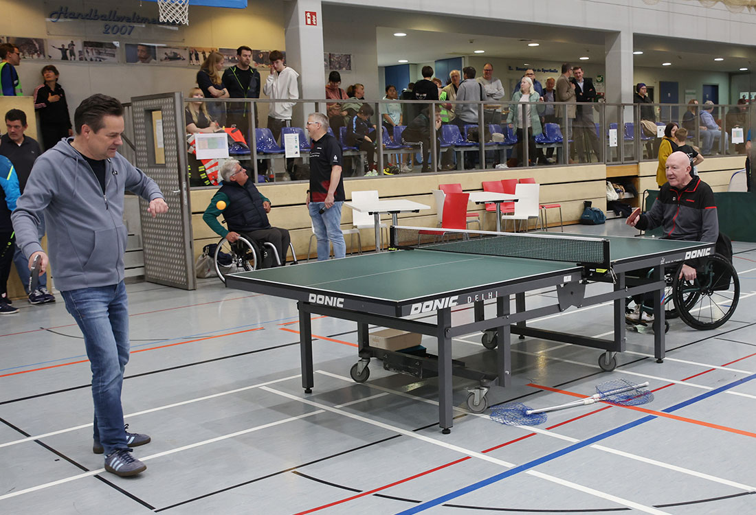 Einblicke in die spannende Welt des Tischtennissports gestatteten Mitglieder des TTC Wiehl und Trainer Charly Weber, der als Jugendtrainer und Chefcoach des Wiehler Rollstuhltischtennis-Bundesliga-Teams fungiert. Kinder, die mindestens fünf Bewegungsstationen absolviert und fleißig Stempel eingesammelt hatten, wurden mit einer Urkunde ausgezeichnet, Erwachsene sportelten dort, wo gerade wenig Andrang herrschte.