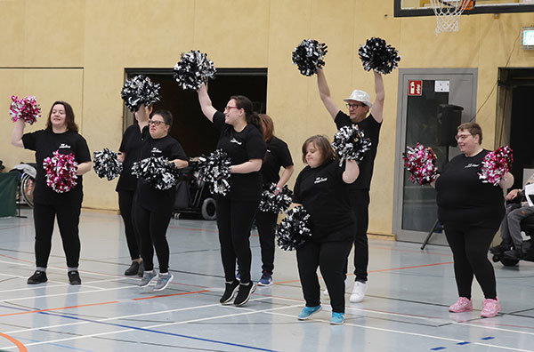 Im Vorfeld des ersten öffentlichen Auftritts vor großem Publikum sorgte das Lampenfieber bei der Cheerleader-Gruppe „Die Pompösen“ schon für leichtes Fracksausen, was sich jedoch als vollkommen überflüssig erwies. Als Eisbrecher zu Beginn des „Sportfestes für Alle“ in der Weltmeister-Halle am Wiehler Gymnasium lieferte die dreizehn-köpfige Tanz-Company aus Reihen des HBW (Heimat-Begleitung-Wohnen) eine mitreißende Show, die von den Zuschauern mit begeistertem Applaus honoriert wurde.