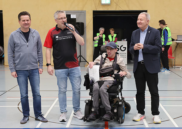 [Dieses Quartett hieß die Besucher beim „Sporttag für Alle“ willkommen: Ulrich Stücker (v.li.), Michael Becher, Thomas Löwen und Friedhelm Julius Beucher.]