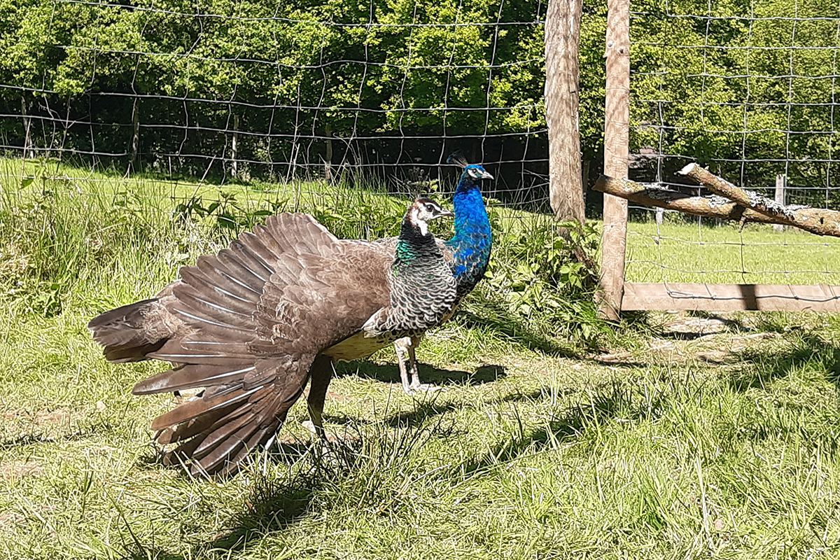 Wiehl - Zwei Pfauenpärchen leben seit Ende April im Wildpark Wiehl.
