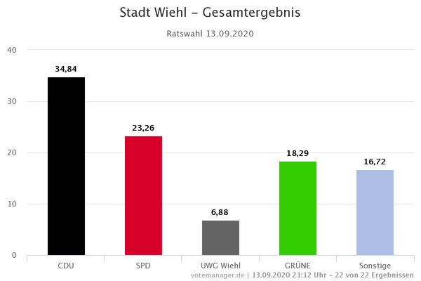Wiehl - Hier finden Sie aktuell die Ergebnisse der Kommunalwahl 2020 für die Stadt Wiehl mit sämtlichen Zahlen und Fakten - auch aus den einzelnen Wahlbezirken.