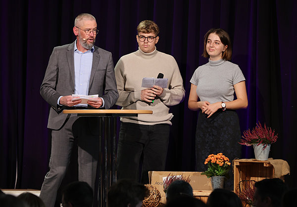 [Dr. Gunnar Bergau (li.) begrüßte mit den Studentensprechern die neuen Teilnehmer.]
