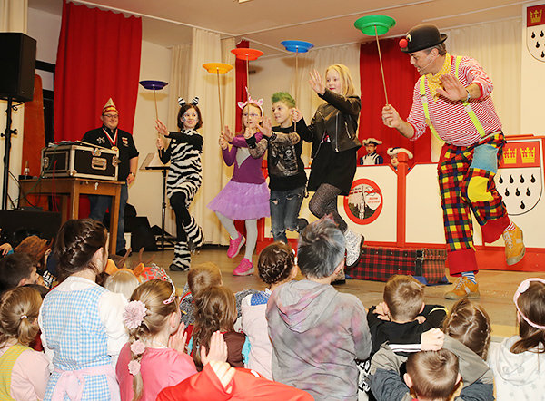 Nach dem Einmarsch und der Präsentation ihrer Tänze bildeten die „Blauen Funken Belmicke“ den Kinderelferrat und führten gemeinsam mit den Karnevalspräsidenten Kevin Mankel und Rainer Tomasetti durch den närrischen Nachmittag. Da zeigte die „Belmicker Rasselbande“ sehr zur Freude der Eltern, was sie gelernt hatte. Ihnen folgte die Junge Garde Schreibershof und die Tanzgruppe Hützemert aus den Nachbarorten. Mit Clown PepePan ging anschließend regelrecht die Post ab. Er hatte alle Kinder im Griff, zauberte mit ihnen, holte alle auf die Bühne und führte unter tosendem Beifall eine Polonaise durch den vollbesetzten Saal.