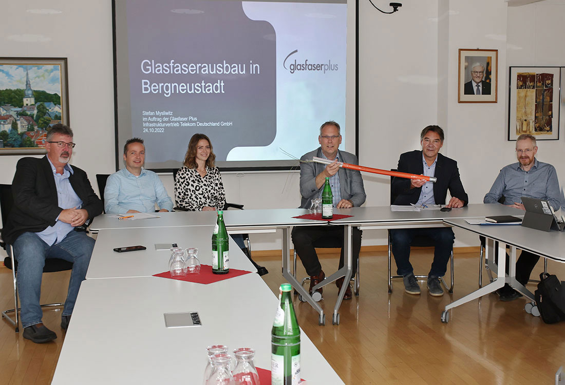 Schon im Juli kündigte Telekom-Regiomanager Stefan Mysliwitz an, dass der Glasfaserausbau in Bergneustadt mit dem „Weiße-Flecken-Förderprogramm“ noch längst nicht abgeschlossen sei und die Telekom bereits plane, diesen in 2023 auch selbst voranzutreiben. Das passiert nun sogar schneller als gedacht. Bereits ab dem 1. November beginnen die Arbeiten, mit denen in den Stadtteilen Bergneustadt Mitte, Hackenberg und Leienbach durch den magentafarbenen Riesen rund 2.800 Glasfaseranschlüsse bis ins Haus gebaut werden sollen. Profitieren vom eigenwirtschaftlichen Ausbau Bergneustadts mit im Download gigabitfähigen Glasfaseranschlüssen (bis zu 1000 Mbit/s = 1 Gbit/s) können über 5.400 Haushalte. Entsprechende Pläne der Firma GlasfaserPlus, einem Gemeinschaftsunternehmen der Telekom und der IFM Investors, wurden am gestrigen Montag im Bergneustädter Rathaus vorgestellt.
