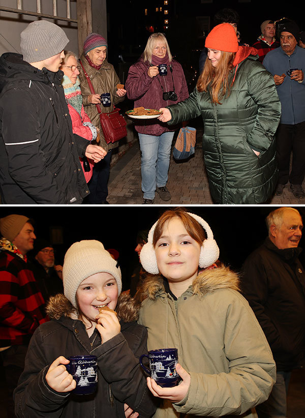 Den Auftakt machte in der Steinstraße das Haus der Familie Poddewijn, die jedes Jahr mit dabei ist und diesmal rund 40 Gäste begrüßte. Unter dem festlich erleuchteten Carport gab es Spekulatius und heißen Kakao, während Han Poddewijn ein Gedicht über Wünsche sowie besinnliche Adventsverse vorlas. Besonders bewegte ein Originalbrief aus dem Jahr 1945, in dem um ein paar Kartoffeln gebeten wurde, weil die Absender seit Wochen keine mehr hatten. „Wenn wir heute an unseren Überfluss denken, dann kann man doch sagen: Leute, was sind wir glücklich!“, gab Poddewijn den Gästen mit auf den Weg.