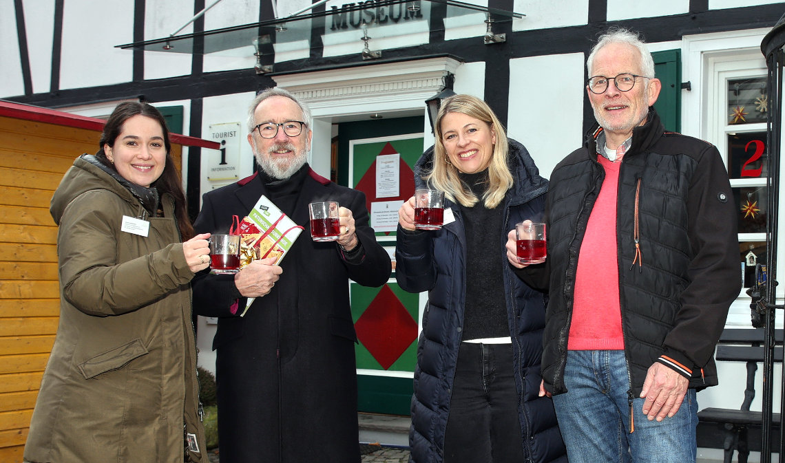 Am vergangenen Wochenende bot der Nikolausmarkt in der Bergneustädter Altstadt den passenden Rahmen für eine besondere Premiere: Die neu angeschafften Glastassen des Heimatvereins „Feste Neustadt“ e.V. kamen erstmals zum Einsatz. Die winterlich gestalteten Tassen wurden über den Verfügungsfonds finanziert – die Hälfte der Kosten trug der Heimatverein dabei selbst. Das Motiv auf den neuen Glastassen vereint das Logo des ISEK mit dem Schriftzug des Heimatmuseums.