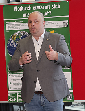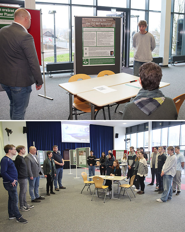 „Ich finde das sehr interessant, wie die Schüler diese Komplexität ergreifen und sich in alle Ecken hineindenken, welches Handeln im Bereich vom CO2-Ausstoß Auswirkungen auf den Klimawandel hat, und in welcher Tiefe sie sich damit beschäftigt haben“, sagte Bürgermeister Matthias Thul. Auch Klimaschutzmanager Carsten Eschenhorn empfand die Ausstellung als hochspannend. „Der Vorteil ist natürlich, dass man das mit ‚Links‘ unterstützt hat und sich darüber auch tiefergehende Videos anschauen kann oder weitere Inhalte findet.“