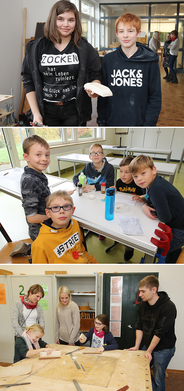 In verschiedenen Workshops geht es Beispielsweise um Technik („Wir stellen einen Teelichthalter, Bild) her“, Hauswirtschaft („Frühstücksspieße schmecken gut“) oder Chemie („Unser eigenes Parfüm“) oder „Experimente im Haushalt“. Jeweils eine Lehrkraft der GHS Bergneustadt arbeitet mit sechs bis acht Grundschülern, oft unterstützt von Schülern der Hauptschule. Während ihre Klassen sich als Modedesigner im Textilraum versuchen oder sich in der Sporthalle als Sportasse qualifizieren, gibt es für die Lehrer der Grundschulen die Möglichkeit, sich über das System Hauptschule und insbesondere das der GHS Bergneustadt zu informieren und Fragen an die Schulleitung zu stellen.