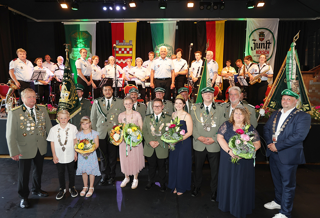 Am Pfingstwochenende feierten die Neustädter Schützen nach drei Jahren Abstinenz im 669. Jahr ihr Schützen- und Volksfest. Nachdem Robert Kämke am Sonntag mit dem 76. Schuss den Holzadler heruntergeholt hatte (OA berichtete), fanden am Montag die Krönungsfeierlichkeiten im grün-weiß dekorierten Krawinkelsaal statt. Hier hatte auch am Freitag bereits ein kölscher Abend zum Auftakt des langen Wochenendes stattgefunden (OA berichtete).